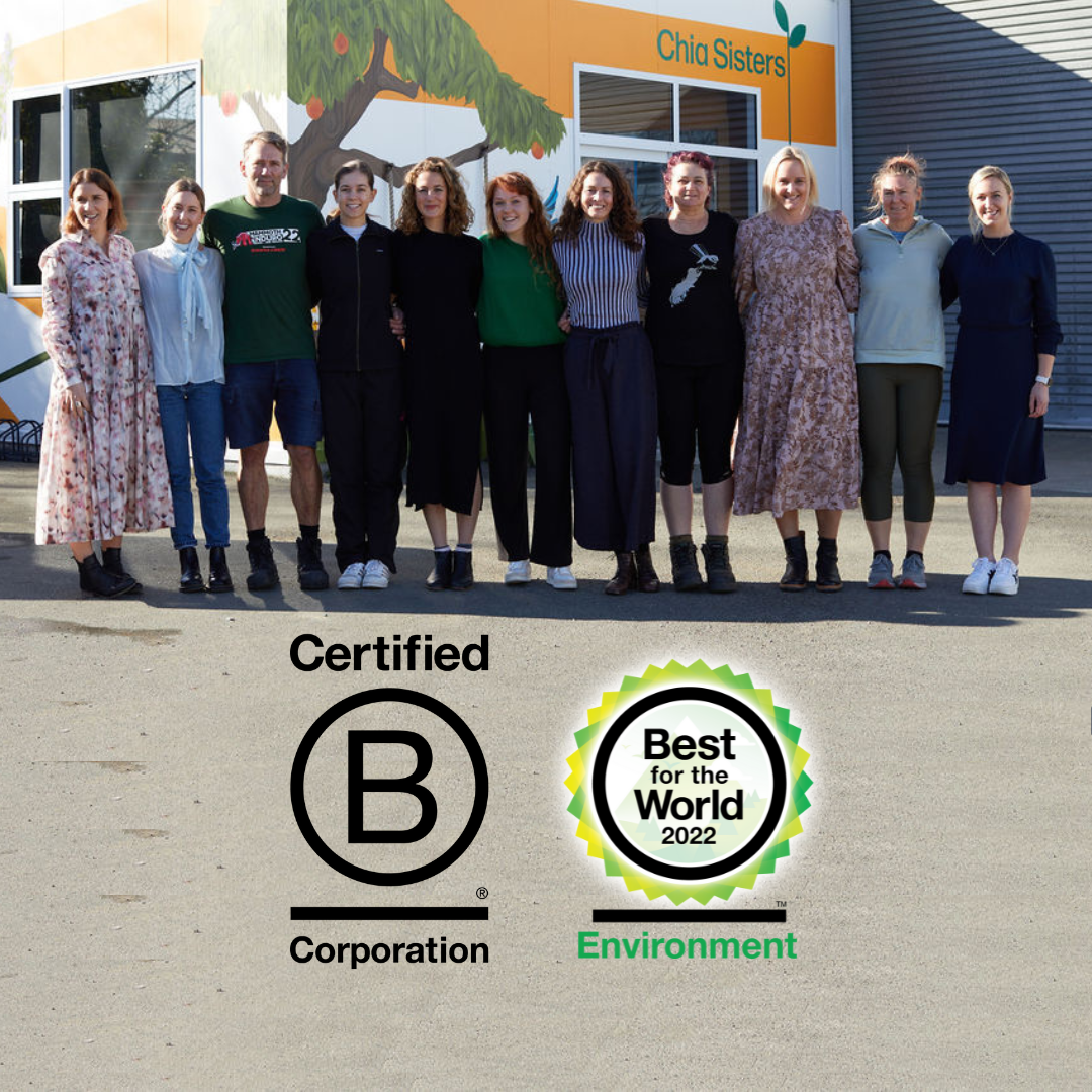 In 2021, Chia Sisters became a B Corp certified business, achieving a score of 118.6 on its impact assessment.